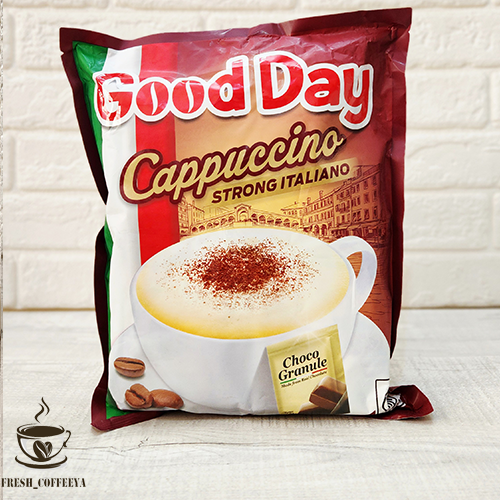 پودر قهوه فوری گود دی (Good Day) مدل Cappuccino Strong Italiano است. این محصول از برند معروف اندونزیایی Good Day بوده که یکی از برندهای محبوب در زمینهی قهوههای فوری و نوشیدنیهای آماده است.
